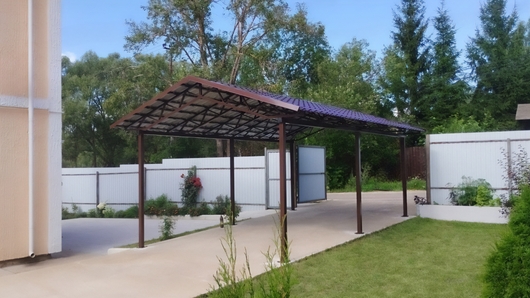 Навес из металлочерепицы двускатный для зоны парковки Арт-658