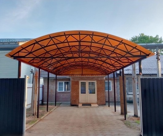 Оранжевый арочный навес из поликарбоната для авто Арт-681